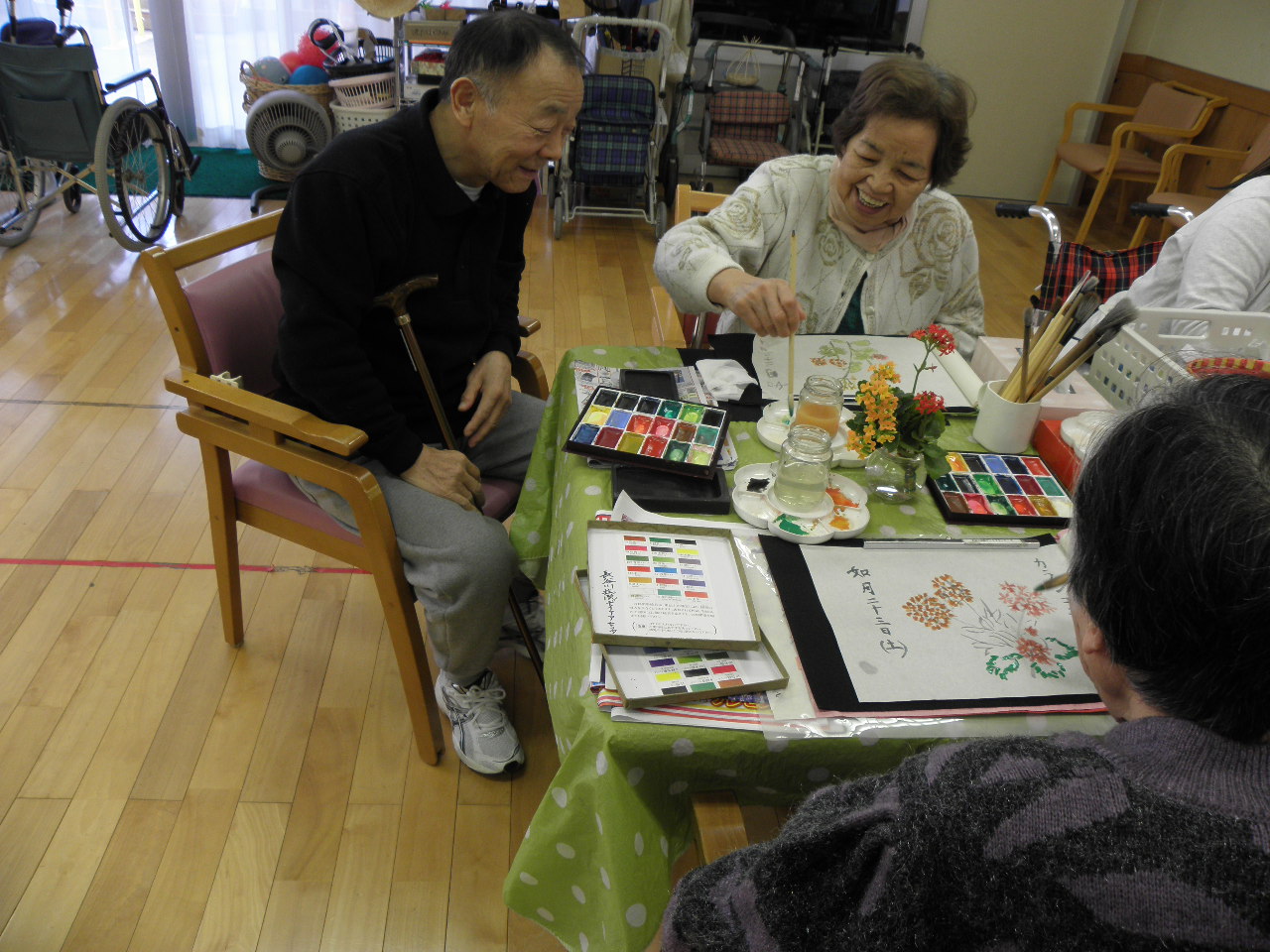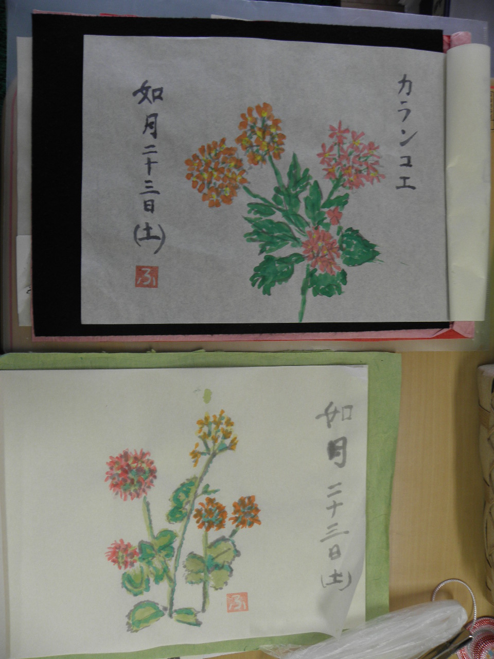 カランコエの花は、ご利用者様が絵手紙の題材としてご自宅の庭から持ってきて下さいました。