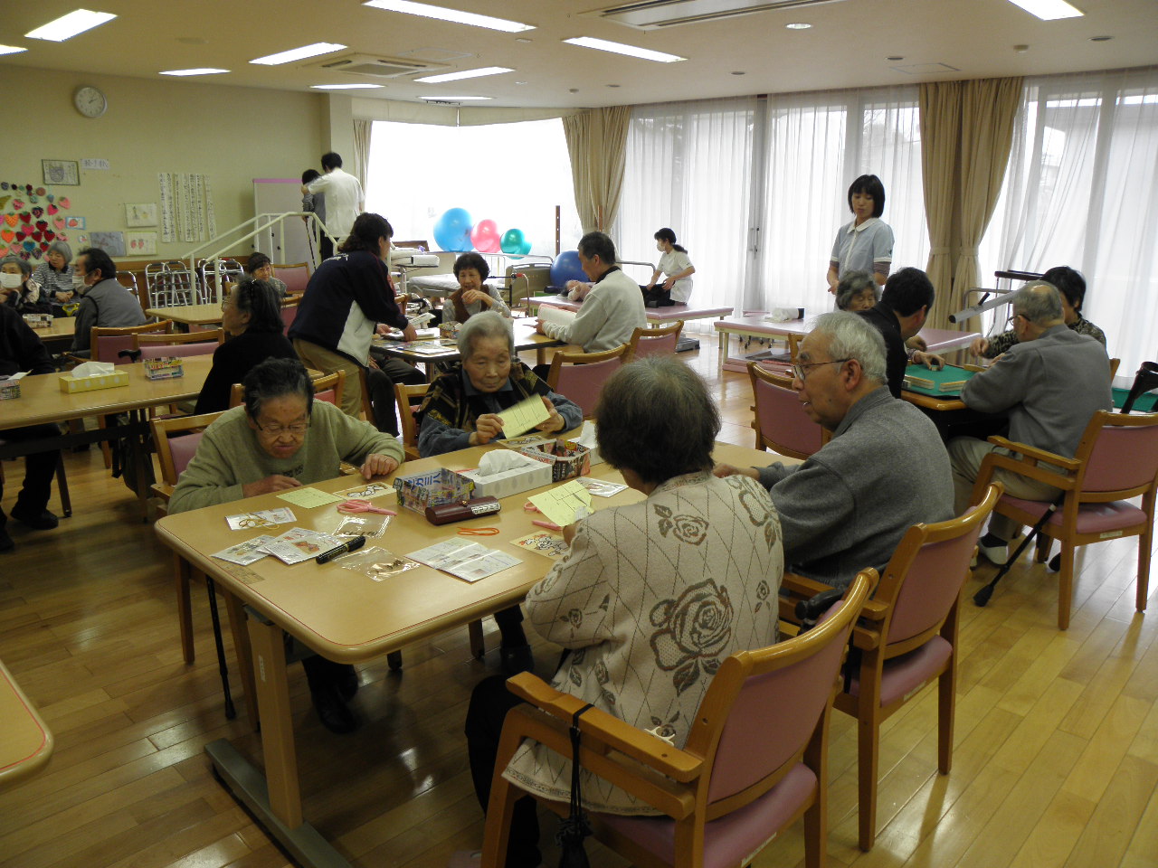 昨日から午後のレクの時間に小集団活動が始まりました!ご利用者様がいくつかのグループに分かれてレクの時間を過ごします。