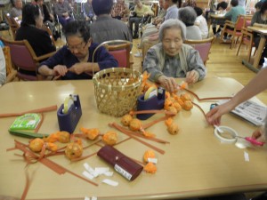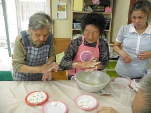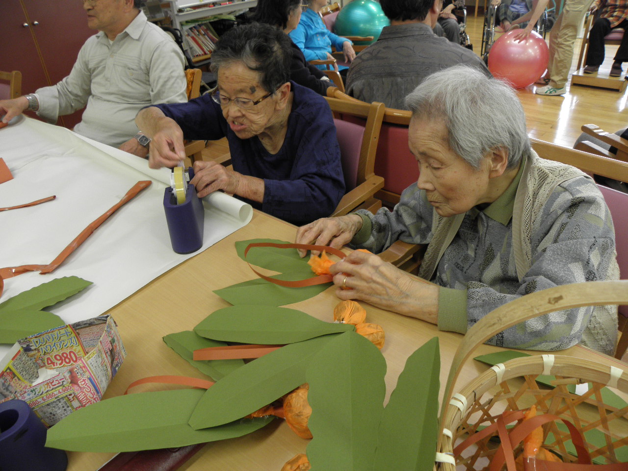 調理は白い丸を、制作班はオレンジの丸を作っています。さて何を作っているのでしょうか?