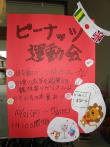 今日から1週間、午後のレクの時間にて秋の運動会「ピーナッツ運動会」を開催します!ブログでも運動会の様子をお伝えしますのでお楽しみに!
