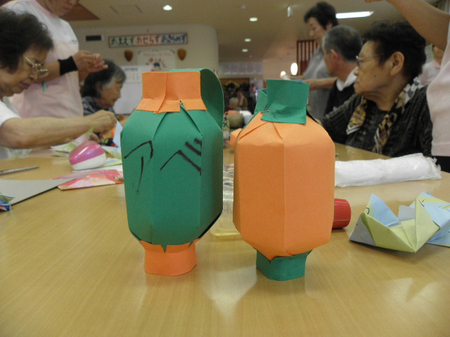 体操の時間には盆踊りを練習したり、レクではちょうちん作りが始まりました。