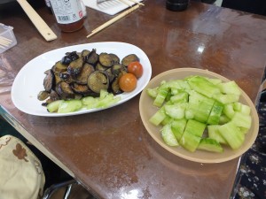 なすのピリ辛炒めと、きゅうりのたたきです。