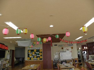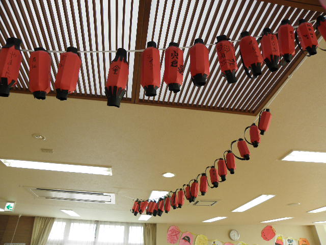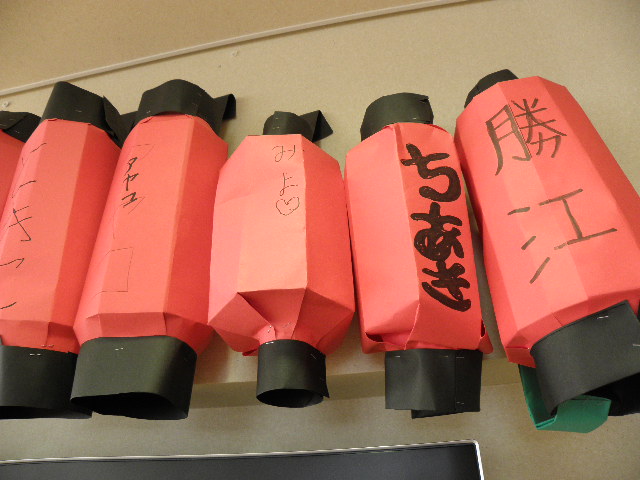 ご利用者様がレクリエーションで制作したちょうちんも並びました。