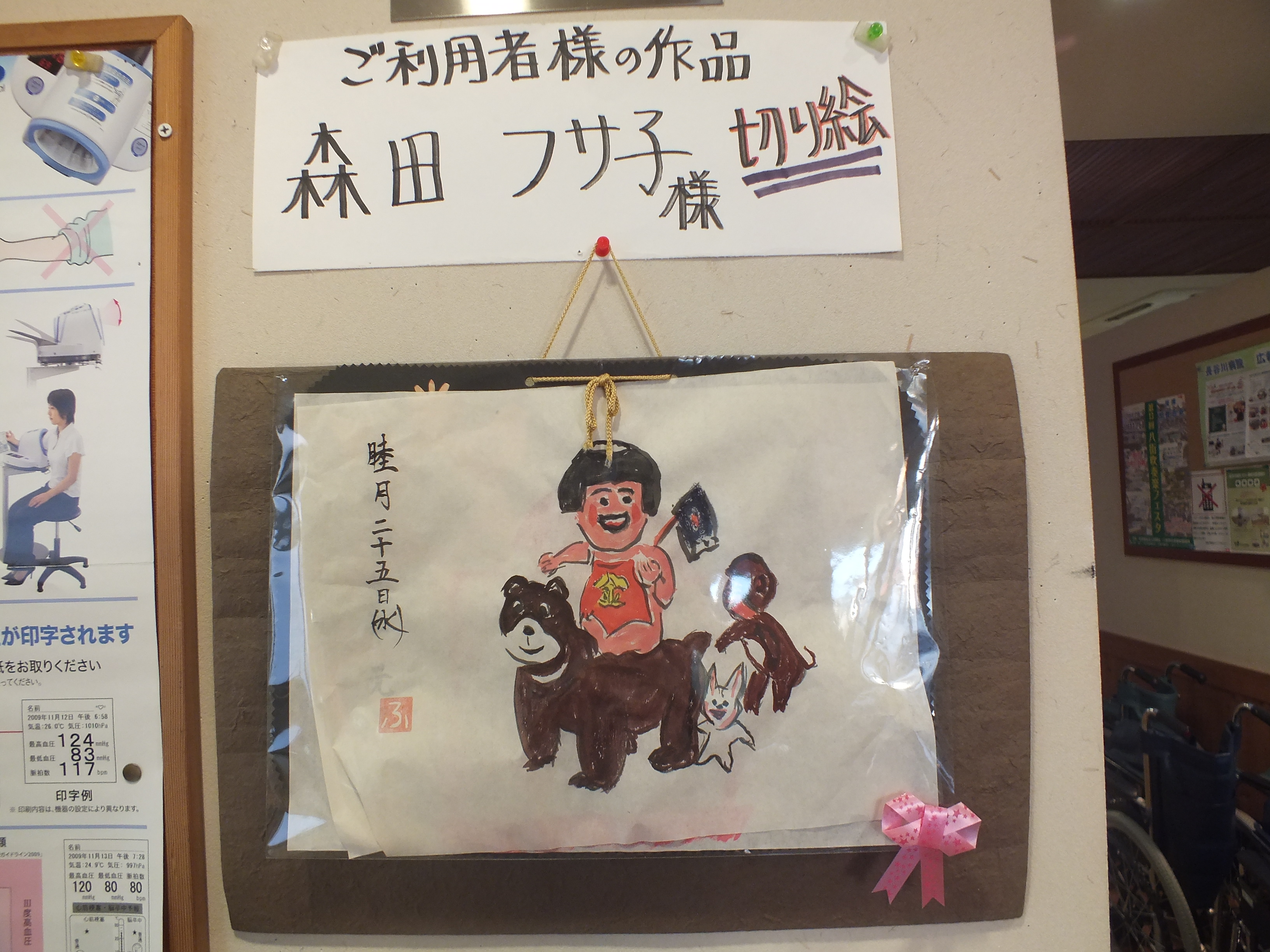 普段は切り絵を飾っていますが、今回はカワイイ絵手紙を書いて下さいました。