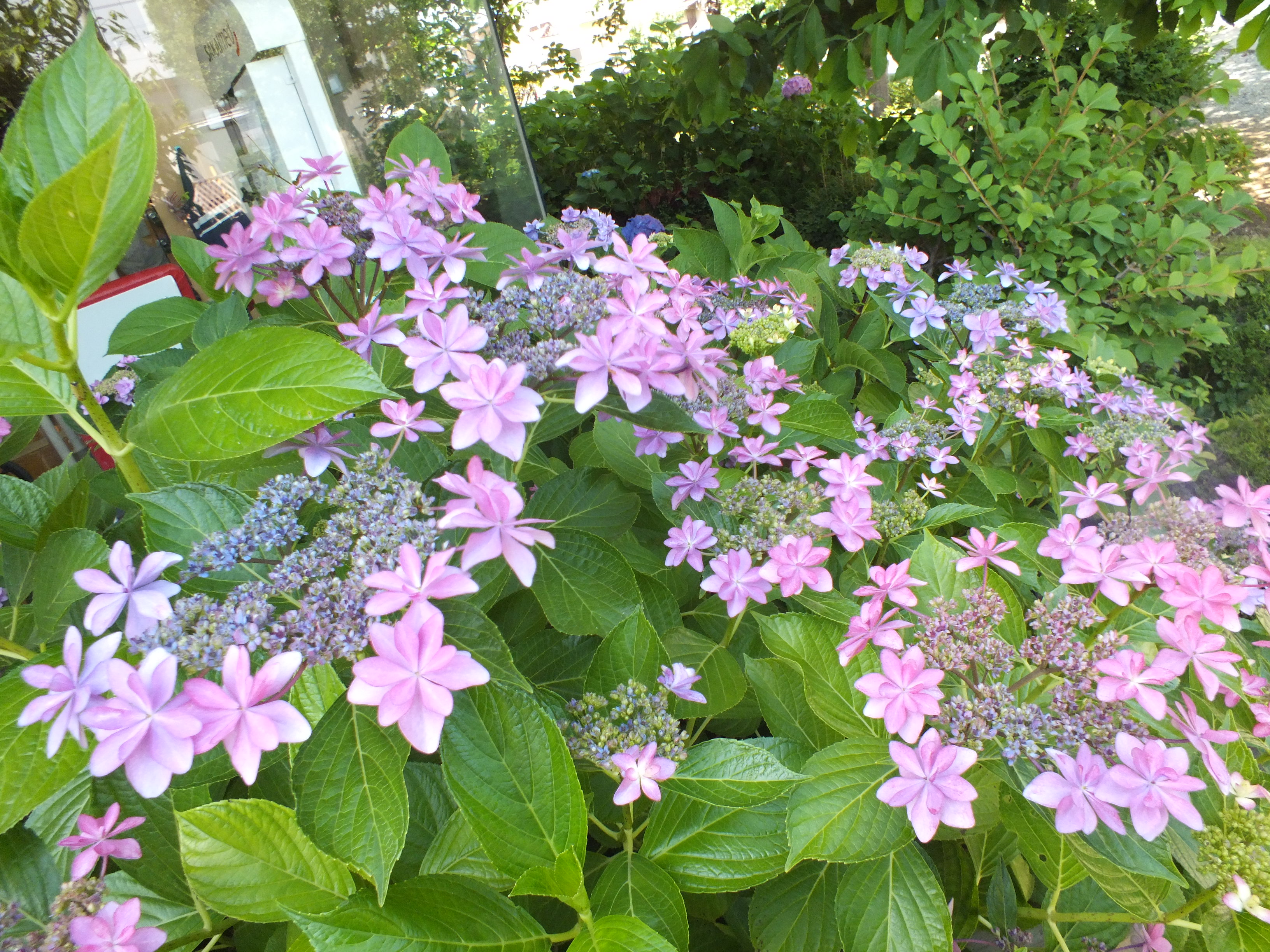 バルコニーに咲く紫陽花