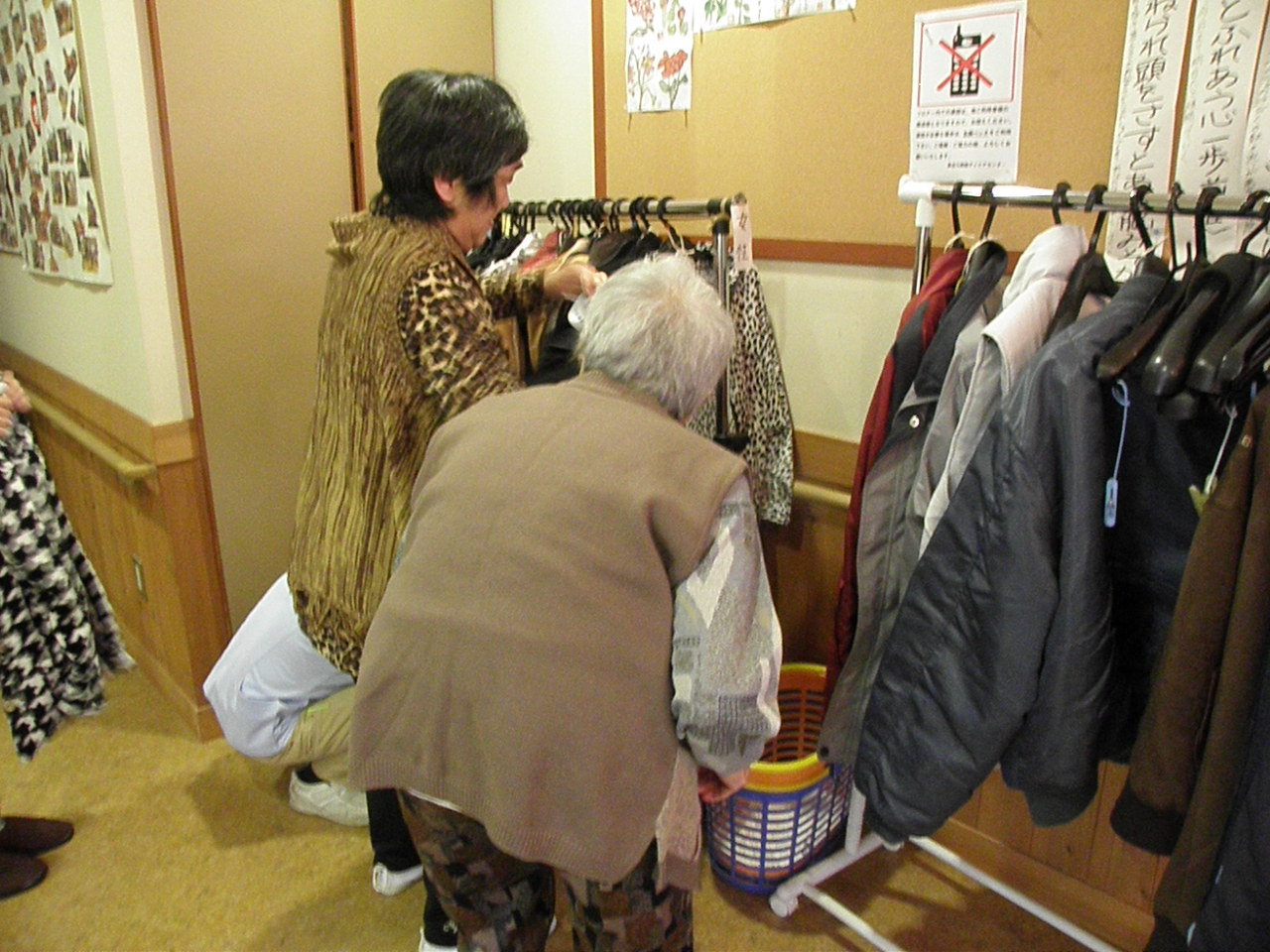 出来る方々には、ご自分で上着をかけて頂いてます。