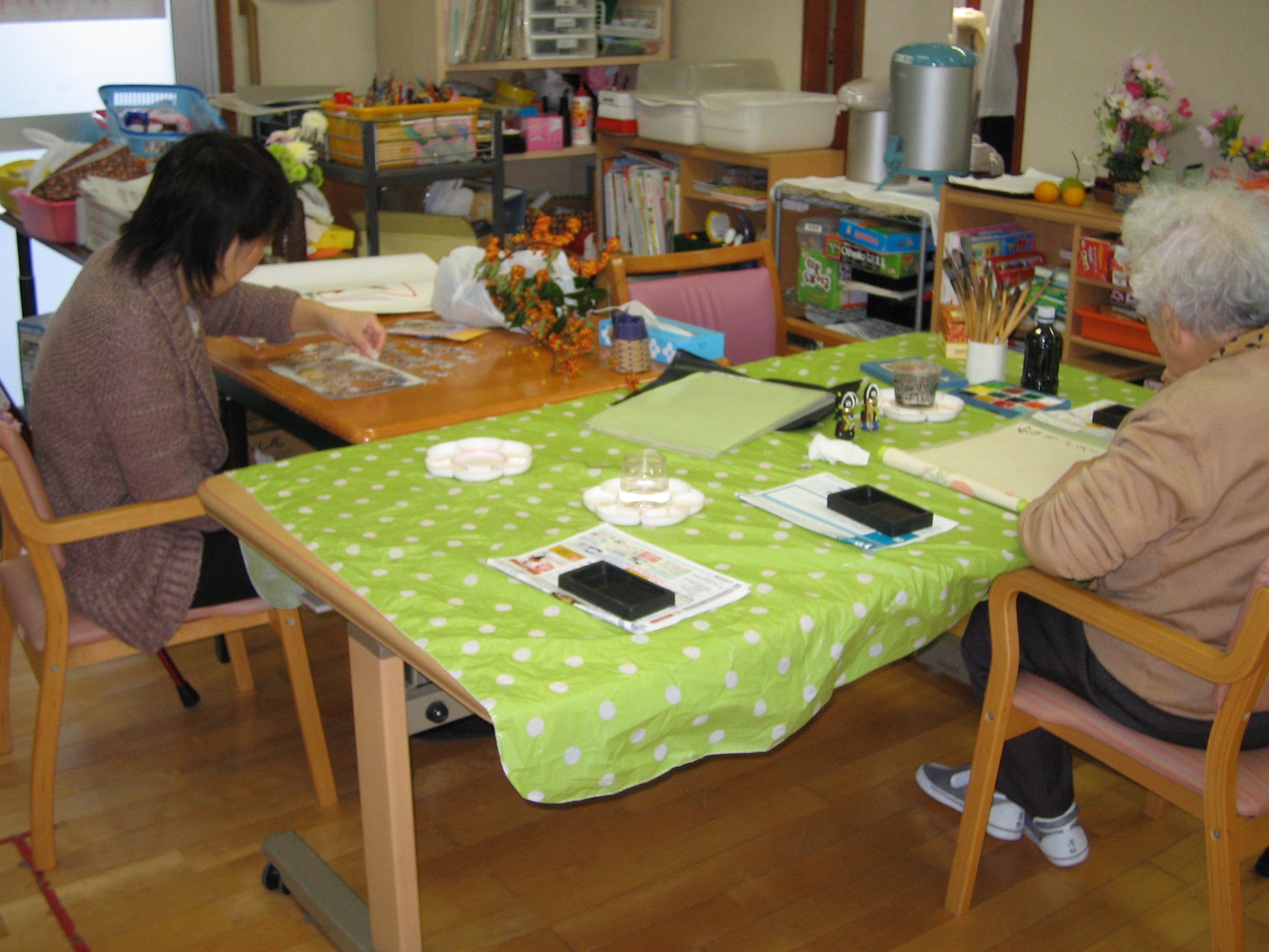 絵手紙をしたりパズルをしたり