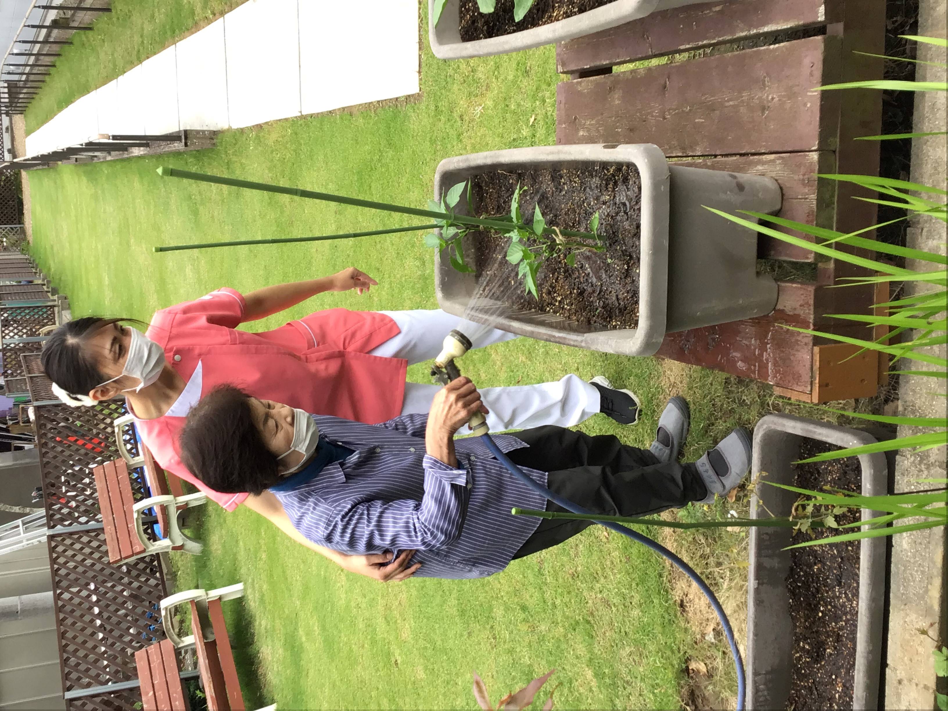 苗植えをしてから、ご利用者様が交代で水撒きをして下さっています。